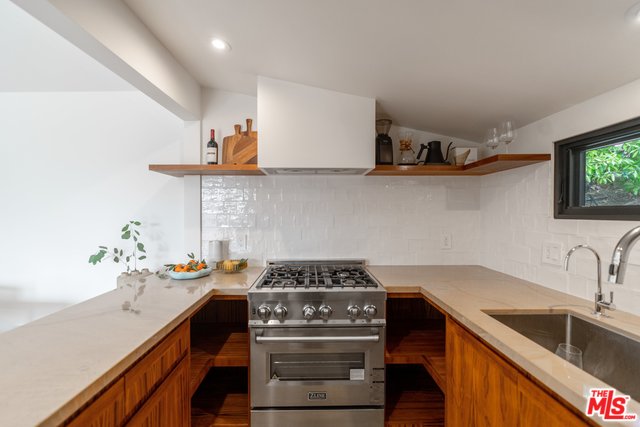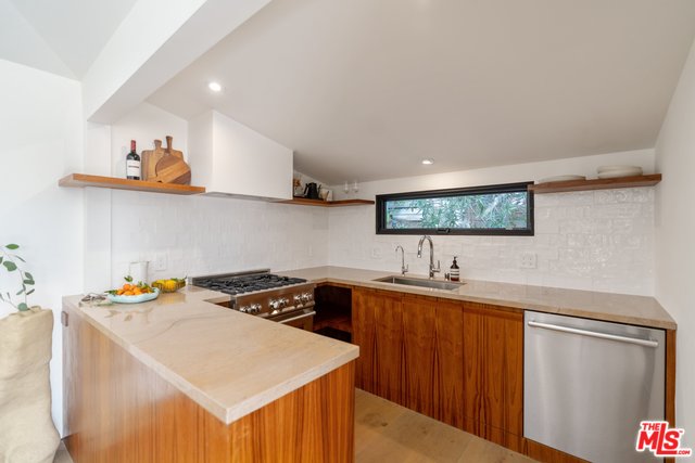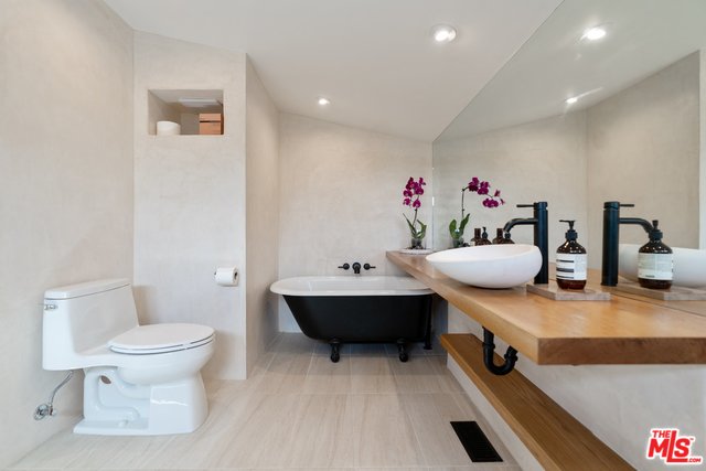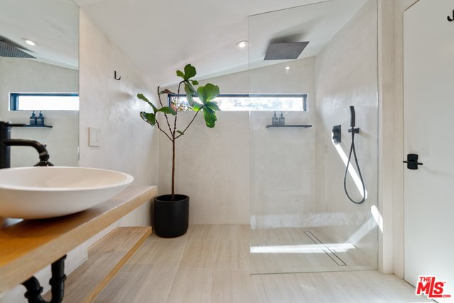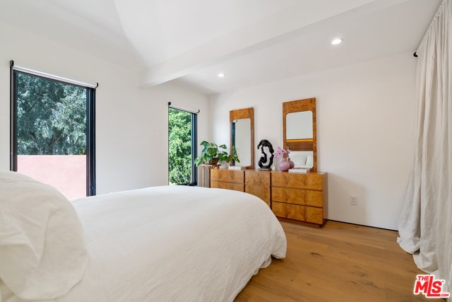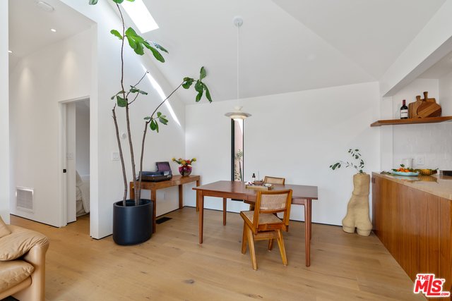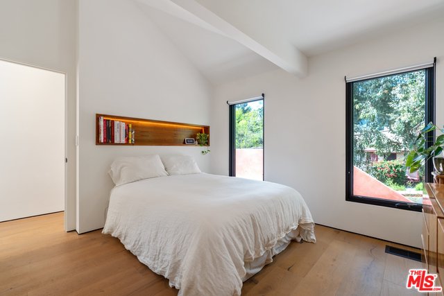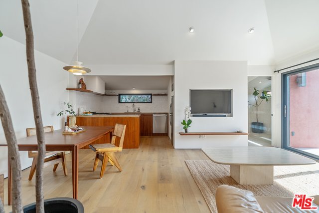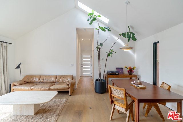 Nestled in the serene hills of Elysian Heights, this stunning upper-level unit of a duplex boasts 2 bedrooms and 1 bath, meticulously remodeled to the highest standards. An open layout presents a cozy living and dining space, complete with a built-in TV and soaring vaulted ceilings, harmoniously integrated with a chef's kitchen adorned with stone countertops and sleek stainless steel appliances. The spa-like zen bathroom is a masterpiece of relaxation, featuring a spacious standalone rain shower and an elegant clawfoot tub. Bathed in natural sunlight, the home promotes an indoor/outdoor living ethos, accentuated by three expansive outdoor patios ideal for unwinding and hosting gatherings, with expansive views of Echo Park and the DTLA skyline. Key features include energy-efficient recessed LED lighting, luxurious white oak hardwood flooring, a convenient on-site washer & dryer, private off-street parking for one vehicle, and central HVAC controlled by a Nest smart home system. Situated on a peaceful street, just moments away from some of the best dining and shopping Echo Park & Silver Lake have to offer.