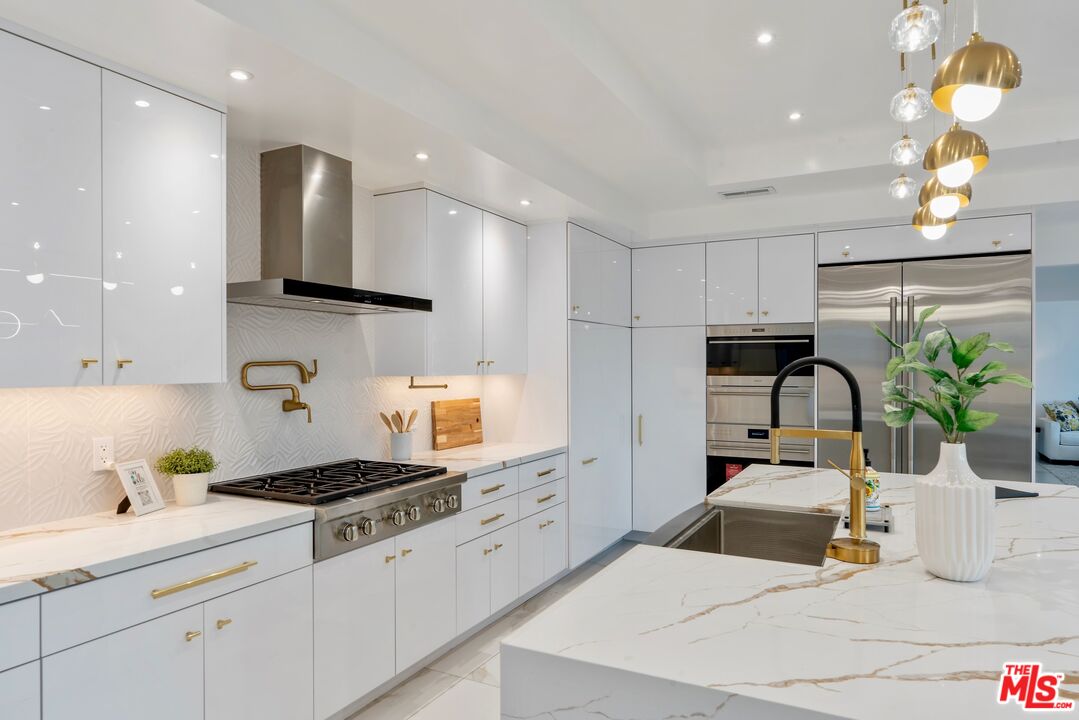 Price Reduced! Unbelievable value for a property of this caliber. Ideally situated south of the boulevard in one of Tarzana's most coveted hillside enclaves, this ultra-private, fully remodeled California Contemporary is hidden behind a long gated driveway and invisible from the street, truly one of Tarzana's best-kept secrets. Spanning 2,752 square feet of interior living on a 0.55 Acre usable lot, this home is an entertainers paradise with seamless indoor/outdoor living across three levels, with a massive pool, stunning valley views and a completely private backyard. Every detail has been meticulously reimagined, from the smooth Venetian-plastered walls and LED-lit stairways to the chef's kitchen outfitted with sleek custom cabinetry, Wolf and Thermador appliances, and designer finishes throughout. The main level features an open-concept living and dining area with walls of glass framing sweeping vistas, an elegant powder room, and a stunning primary suite with a spacious walk-in closet and spa-inspired bath complete with heated floors and exquisite materials. Downstairs, discover three additional bedrooms, including a secondary primary suite with its own en-suite bath, plus a second full bath, a family room with built-in wet bar, and generous storage, making the home ideal for hosting, guests, or multi-generational living. Outside, the property unfolds into a true entertainer's paradise: multiple lounging and dining terraces, a massive heated pool and hot tub, expansive deck space, and a large fenced backyard with endless potential for ADUs, sport courts, or custom outdoor living spaces. Additional highlights include a fully automated smart-home system, two-car garage, fully gated driveway with parking for 6+ cars, and exceptional privacy throughout. A rare blend of modern design, scale, and seclusion, this Tarzana hillside retreat embodies the very best of Southern California living.